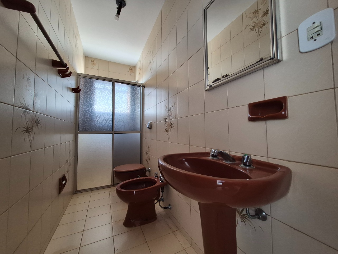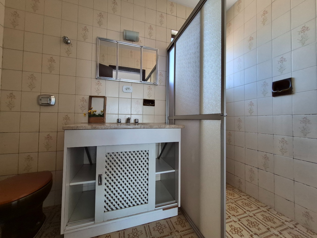03 Banheiros com box, espelho e armário,
